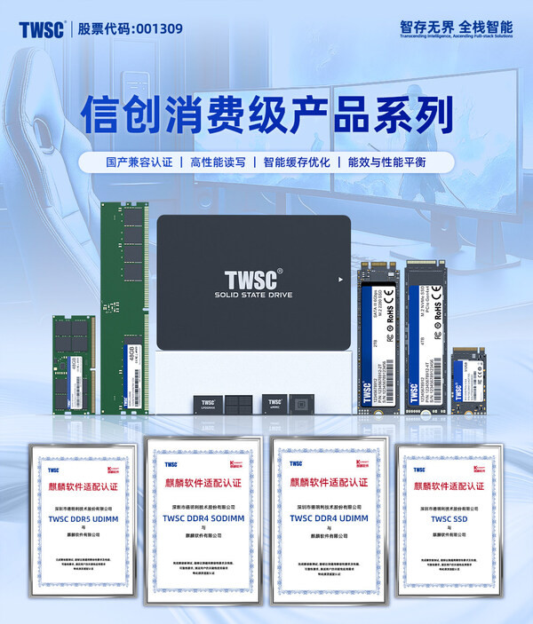 深圳2025年10月24日--随着信创替代全面提速,国产存储产业正迈入技术自主与生态协同并进的新阶段。德明利依托17年自主研发积累,在主控芯片、固件算法及系统优化方面实现系列突破,推出面向政企、工业与教育领域的信创存储产品矩阵,并积极推进与飞腾、龙芯、麒麟等平台适配认证,为行业提供高可靠数据支撑,加速信创体系的落地与普及。 当前全球技术经贸格局正经历深刻变革,供应链与核心技术断供存在不确定性因素,我国信息技术发展重点从解决"有无"问题转向"好用与可靠"新阶段。存储系统的性能、可靠性与安全性,直接关系到数字基础设施的稳定与效能。 存储创新成为国产信息体系规模化应用关键 政策与市场需求的双重驱动下,国产存储产业正迈向技术深水区。《2025存力发展报告》显示,国产存储在介质、芯片与系统层面实现三级突破:QLC芯片容量已达2TB,头部云服务商也完成从控制器、分布式存储到整机的垂直整合,存力产业链自主可控能力持续增强。 然而,面对2027年央企国企全产业链100%信创替代,以及关键行业核心系统国产化率超70%的目标,产业规模化部署仍面临稳定性、兼容性及核心系统迁移可靠性的现实挑战,尤其在PCIe/CXL新标准和AI驱动的存算一体架构兴起下,国产存储的性能、标准与生态融合正成为突破重点。 自主研发与全链路国产化,构建可靠存储底座 德明利拥有十七余年主控芯片与固件算法研发经验,构建了"芯片+算法+场景"的全栈技术体系,形成覆盖消费级、工业级、嵌入式与企业的完整产品矩阵。截至2025年6月,公司累计申请知识产权527件(已授权241件),研发人员超350余人,并布局深圳、成都、杭州、北京、长沙五大研发基地,为国产化产品持续创新提供坚实支撑。 基于自主技术积累,德明利打造国产化存储方案,依托自研SATASSD主控芯片TW6501、国产闪存颗粒与固件算法,实现从核心器件到整机产品的最高产化率。通过覆盖设计、制造与测试的本土化体系,构建可验证、可追溯、可持续的安全供应链,为政企、教育、金融等行业提供高可靠存储支撑。